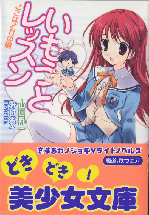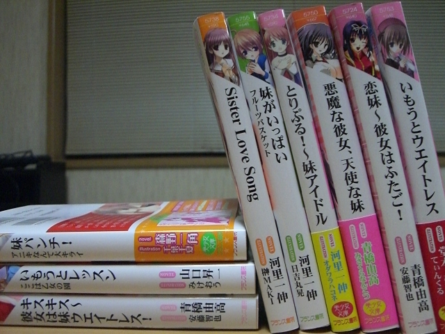 いかんせんcrestaです。ども。 経済産業省の試算によると一日あたりの閲覧者数が30にも上る(前と変わってない) という当ブログですが、日頃の御愛顧感謝しております。 さてそんな中、ここ数日に渡って突如美少女文庫批評などを始めた当ブログ。 こんな駄目日記を読んでくださっていた方も困惑しておられる事でしょう。 元々はエロゲレビューサイトの為、やはりエロゲ関連の話題をするのが筋というモノ。 (今までもあんまりしてないような気もしますが) 余り興味の無い事を書かれても見た人は面白くないのでは無いかと思っていました。 そう思っていたからこそ、初回ではいつの間にか昨日と違う本になってるというネタ、 2回目ではキミキスと間違ったというネタを盛り込み、 出来るだけ退屈にならないように善処してきたつもりです。 しかし、やはり美少女文庫はエロゲとは似て非なる存在。 そこで、今回は少しでもエロゲに近づけるべくこの本にしました。 美少女文庫批評第三回 『いもうとレッスン ここは乙女の園』 (著:山口昇一 絵:みけおう 発行:フランス書院) 著者の山口昇一氏はグリーングリーンやFrontWing系のエロゲ、 そしてゼロの使い魔でもお馴染みなヤマグチノボル氏。 そしてイラストはこんねこ・みらろまのみけおう氏。 エロゲ繋がりがあればボクのチキンハートも免罪符です。(?) さて、ここ三日間の当企画を読んでくださった聡明な方はもうお気付きの筈。 前回、前々回に盛り込んだネタの他に、私はもう一つ壮大な伏線を張っておきました。 そう、妹であります。 いっそこのまま誰かにツッこまれるまで妹モノばかりを取り上げ続け、 読んだ人に得も言われぬ違和感を残そうかと思っていたんですが、 ぶっちゃけ妹モノは飽きました。 てか、そろそろ美少女文庫から離れないと読者も引いているんじゃないかと思うのです。 そう思うに至り、明日からは違う事を書こうと私は誓いました。 で、どうすんの…?コレ… <あらすじ> 歌舞伎の女形として有名な家系に生まれた香月カオル。 女性らしい顔立ちと声を持つ美少年のカオルだが、女形としての実力はまだまだだった。 そんなある日、父から女形修行の一環として女子校に通う事を命じられる。 その学校で出会う女教師やイジメっ娘、イジメられる孤高の美少女。 そして同じ学校に通う、カオルの妹である瑞希。 それぞれの関係が交差し、(中略)セックスする。 果たして、カオルは誰を選ぶのか…?そして女形の修行は…? <登場人物> 『瑞希』 女形の家系に生まれながらも、女である為にそれ程厳しくはされなかったカオルの実妹。 兄が修行と称してパンツを盗んで履いている所を目撃し、ふしだらに。 実は役者として天賦の才を持ち、その才を生かして活躍する清純系小悪魔。 『素子』 カオルが通う事になる学園の女教師。 ちょっぴり変な人として名を馳せるも、即座にカオルの正体を見抜き、 エロティックな行為に及ぶ淫乱女教師係。 『遥』 カオルが入ったクラスでイジメられていた美少女。 イジメを受けつつも気丈に振る舞い、芯の強さと気高さを持つ孤高の存在。 でもレズ。 『ヤマザキ』 遥のイジメを先導していた強気系ナマイキお嬢様。 ターゲットをカオルに変更するも、アッサリと処女を散らされた上に その後カオルをお慕い申し上げるカタルシス係。 <感想> さすがと言うべきか、既に何度か読んだ事のあるノボルテキストは軽快かつ巧妙。 真面目な場面でほんの少し崩すギャグのバランス感覚に優れている。 「なにが大きいんだ?言ってみろ」 「チ×ポでございます…」 などは笑わせてもらった。ございます、て。 しかし攻略人数が多すぎたのか、どうにも物語はまとまらない印象。 散々遥の美少女っぷりを煽るも、後半ではなし崩しな展開に。 メインと思われる妹は中盤で極端に影が薄くなり、ラストを締めるも あれ?いつの間に出てきたの?みたいな感じも。 女教師に至ってはエロい雰囲気にしたい時に出てくるエロ係、 ナマイキお嬢様は個人的には大好きだがアッサリと切り捨てられる。 最終的には遥とも切れ、成る程、妹エンドで終幕かと思いきや 何故か遥が再登場し訳のわからん大団円。 むぅ、どうせならナマイキお嬢様も一緒に加えてくれ。 ページ数が足らないのか、やはり攻略人数が多すぎるのか。 何とも駆け足でカオルの気持ちが移り変わる不思議ストーリーだった。 やはり一応まだ数えるがカラー口絵が1に挿絵が10。 絶対ノルマ数が決まっている気がする。 絵は好みだがエロシーンの絵が4と少なめ。あとカオル君が一番可愛い。 文章比率的にはエロが70~80%くらい。このへんにもムリがある気がする。 お話評価:★★☆☆☆ <エロス> エロシーンは本番少なめ。 妹がとりあえずフェラをし、転校初日の朝の校門の時点で女教師に捕まりSEX、 その二人とのエロを交えつつ物語は進行、イジメっ娘ヤマザキに対し反逆。 ナマイキなお嬢様を屈服させるシチュエーションは萌えた。 イジメを解決し遥