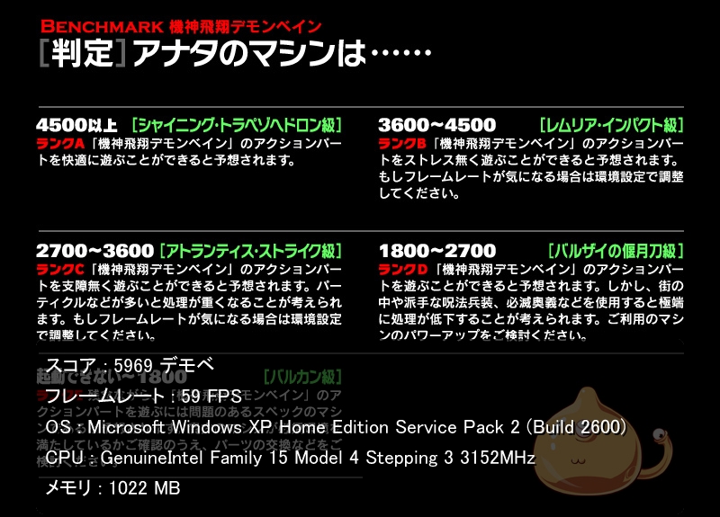 レムリア・インパクトォ!! ………俺もろとも昇華! ども。crestaです。 のっけからやってない人には解らないネタで申し訳ない。 今更ですが、デモンベインベンチマークをやってみました。 Copyright(c)Nitroplus (一応) これやって初めて気付いたんですが、アクションパートがあったのですね。 てっきりまた普通のAVGだと思ったので、前作は肌に合わずでしたが いきなり興味津々の現金な輩と化しました。 幸いマシンパワーはソコソコなので、機会があったらやってみたいです。 5/26発売予定。うん、多分無理。 でもやっぱゲームパッドとか要るんですかね? 残念ながら、ネトゲはおろかアクション系もやらない生粋のエロゲマですので、 ゲームパッドとか持ってないのです。 そもそも18禁じゃないし。前作はけっこうエロかったので残念。 いっそグリグリ動かしてエロエロすれば神なのに。機神だけに。 誰が上手い事を言えと(ry と、いうワケで暇だったらやるかもしれません。 というか実は最後にコレを載せたかっただけなんです。 Copyright(c)Nitroplus (一応) フハハハハ!見たか!この実力を! シャイニング…シャイニング…トラ…ペ…? …シャイニング級! そう、何か凄い!たぶん! と、いうワケで、スコアを自慢したかっただけなんですが、 そもそもどのくらいなら高いのか解りませんでした。てへ。 ちょっぴり見てきた所、10000とかいう人も。 キミはアレか。シャイニングな娘。級か?師走の翁か? てコトで、微妙に5月の購入候補になったデモンベインでした。 【当ホームページにはニトロプラスの許可の上でニトロプラスの著作素材を引用しております。これらは他への転載を禁じます。】 (一応) crestaでした。それではまた。 コピーライトに(一応)とか書くのはヤメようぜ…。 PR |